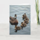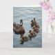 This design shows an adult waterbird gliding across calm water, its rich brown feathers marked with dark ringed patterns and a deep black head held high. Just behind and slightly to the right, six fluffy youngsters trail in a tidy diagonal line, their cream-and-brown down brushing the surface as if they’re staying close for comfort ❤️. The adult’s steady, forward-facing gaze reads like a watchful guardian, while the little ones angle their heads toward it with a trusting, affectionate closeness. The background is a simple wash of muted blue and soft gray water, with small ripples spreading outward from the group. Soft, diffused lighting brings out the layered feather textures on the adult and the fuzzy edges on each chick. Along the upper portion of the card, the main message sits centered in a gentle gray tone, with a smaller line of text placed near the bottom in pale blue 🌼. The water shows faint, silvery reflections beneath the birds, and the chicks’ tiny dark eyes and small beaks are clearly defined against their down.