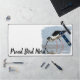 Add a touch of your love of birds to your home or office desk with this mat featuring a black and white wading bird. This adorable small bird is standing in blue water and is hard at work finding a meal. "Proud Bird Nerd" is the sentiment on this desk mat and can easily be customized if you desire.