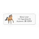 Original fine art design of a trotting dappled bay horse by illustrator Carolyn McFann of Two Purring Cats Studio on a customizable label for horse lovers.