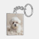 The back is a customizable photo template. Use the "Personalize" tool to replace the placeholder dog with a high-quality picture of your own pet. This dog photo keychain makes a thoughtful Father's Day gift, birthday present, or everyday accessory for a dog lover.