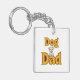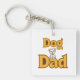 This double-sided acrylic keychain is designed for the proud Dog Dad. The front features a "Dog Dad" graphic in a collegiate style with a cute white puppy illustration.