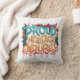 A vibrant and eye-catching pillows with the phrase "Proud Heritage Endures" in multi-colored block letters, arranged in a circular pattern, creating a visually striking and memorable design.