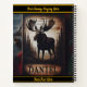 A striking wooden plaque features a grand moose, surrounded by tall trees, exuding a calm aura during twilight hours.