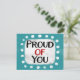"Proud Of You" is a cute inspirational or motivational quote with a white accent shape surrounded by white textured whimsical dots.