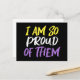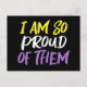 I am so proud of them postcard written in yellow, white, and purple on black for nonbinary parents. Show your pride for your non-binary child with the non binary colors for a mom or dad.
