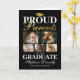 Congratulations greeting card featuring a academic mortarboard, 5 photos of your child, the saying "proud parents of the graduate", their name, place of study, and class year.