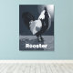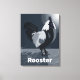 The proud dark blue rooster on an oblong canvas is a blue monochromatic digital artwork. It is perfect for decorating a kitchen wall. How to customize the template? Choose the background color to match the hue to an existing color scheme. Mid-range tones work best and return the chosen color lightened up with white or darkened down with black. Personalize the caption text, the font, and the font color. For help or custom designs please contact www.KBMD3sings.com/contact/
