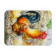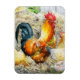 A barnyard rooster framed by a bevy of his lady hens and hay in soft focus around him. The gentle yellows and grays bring the colorful rooster into the center of attention, right where the proud bird likes to be. This is a mixed media drawing in oil pastel and colored pencil. By Amanda Diehl, Paxdomino Designs