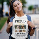 Showcase your pride and joy as your sibling graduates with our specially designed white & gold graduation ceremony t-shirts. These tailor-made pieces, complete with a classic grad mortarboard design, five personal photos, the bold statement 'proud sister of the graduate', and personalized with your siblings's name, place of study and class year, make a definitive statement of pride and accomplishment.