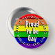 LGBT Pride Coming Out , National Coming Out Day, October 11th. Proud to be gay rainbow button.