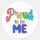 “Proud to be Me” Rainbow Text Classic Round Sticker