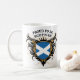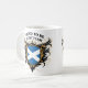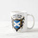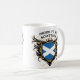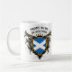 Cool crest design with national flag of Scotland colors and caption: Proud to be Scottish. Great Scottish pride gift.