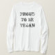I love this shirt. I had written to the artist asking her if this picture was available on a shirt, and she wrote me back telling me where I could find the shirt. These shirts can be custom made to have a different saying. I loved this saying and went with it. The artist wrote me back later to tell me that she had seen my order go through. How's that for service? Pretty special. It's just as displayed. Perfect!