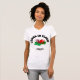 The material is a great quality that is hard to find with most tee shirts. Fabric was not see-through or thin at all, but was also very soft and comfortable. The shirt description states that it runs a little small, so I sized up one size for a perfect fit! I would definitely buy this type of tee shirt again because I love the fit and high quality fabric that I cannot find anywhere else. The printing was perfect and just as pictured. Loved the cute quote and really enjoy the tee in both the quality and design. I love quirky typography designs and funny quotes and I am extremely pleased with the overall quality and value I get at Zazzle!