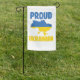 Proud Ukrainian in their colors of yellow and blue garden flag on a white background
