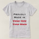 This funny maternity t-shirt is sure to get a laugh. Default text says "Proudly Made in", plus two lines of your text. Default is heather gray with black and red letters, but you can customize colors and text. All Rights Reserved © 2017 Marcia and Alan Socolik.
