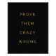 "Prove Them Crazy Wrong". Silence the doubters with this inspirational motivational quote, in a stylish minimalist typographic design of black and yellow. Let this positive quote uplift your day and remind you to believe in your mission. Makes the ideal gift for the entrepreneur, small business owner, or anyone working hard to achieve their dreams against the odds.