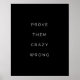 "Prove Them Crazy Wrong". Silence the doubters with this inspirational motivational quote poster, in a stylish minimalist typographic design of black and white. Let this positive quote uplift your day and remind you to believe in your mission. Makes the ideal gift for the entrepreneur, small business owner, or anyone working hard to achieve their dreams against the odds. Soft neutral pink will suit any decor. Did you know you can change the background color to any color your want or add your own photo to the background of the quote? Simply click the "Customize it" button and delete the black background and either add you own photo or choose a new background color from the color palette.