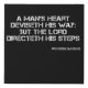 This canvas art features the Proverbs 16:9 bible scripture and bible citation with white letters. Our prints are printed with the highest resolution on cotton-poly archival paper for a long-lasting fade resistant print measure 10.00"x10.00". this panoramic print will make for the perfect addition to brighten up any home or office.