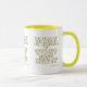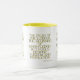 This two-tone mug features a chalga light print font with blue letters yellow outline showcasing the "Proverbs 1:7 KJV" bible scripture verse over a white background. This verse is referencing the Book Of Proverbs 1st chapter showing the 7th verse in this bible scripture quote theme from the King James bible. The rim & handle are glazed in matching colors available in 11-ounce or 15-ounce sizes microwave and dishwasher safe ceramic construction.