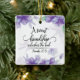 Personalized friendship Christmas ornament depicts a simple floral watercolor design with lavender, blue and purple flowers. It features an inspirational quote taken from Bible Verse Proverbs 27:9, "A sweet friendship refreshes the soul." The back features Ephesians 1:16, "I do not cease to give thanks for you, remembering you in my prayers." Both back scripture and name can be customized to the details of your choice.*
