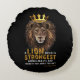 This round pillow features a dual bold print font with yellow and white letters displaying the "Proverbs 30:30" bible verse scripture and citation with the face of a lion wearing a king's crown above in the faith based theme. This pillow is made with high quality fabric our pillows are soft and wrinkle-free the cover is machine washable.