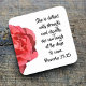 Proverbs 31:25 says that an ideal Christian woman is clothed in dignity, meaning comfortable in the now, and prepared for days to come. This floral Bible verse coaster is a great reminder to the women in your church that God created us able to handle what he sends us. It's a great Christian coaster to show a comfortable woman or to encourage other women to be close to the ideal Christian woman. This Christian affirmation coaster shows half of a red rose photograph next to the words of a favorite scripture passage: Proverbs 31:25. It's easy to personalize the text to be a unique gift or motivational Christian coaster. "She is clothed with strength and dignity; she can laugh at the days to come."