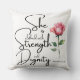 Proverbs 31:25 She is clothed Bible Verse Flower Throw Pillow