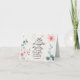 Inspirational quote scripture greeting card depicts a beautiful floral design with pink flowers and blue leaves. It features Bible Verse Proverbs 31:25, "She is clothed in strength and dignity and she laughs without fear of the future." _