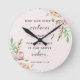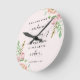 This clock features soft florals on a pink background and the scripture "Who can find a virtuous woman? For her price is far above rubies." Proverbs 31:10 (KJV)