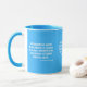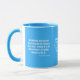 This two-tone mug showcases a design that features a Loubag print font with white letters featuring the "Proverbs 3:27" KJV bible scripture verse over a light blue background in this faith based theme. This verse is referencing the Book Of Proverbs 3rd chapter showing the 27th verse in this bible scripture quote theme from the King James bible. The rim & handle are glazed in matching colors available in 11-ounce or 15-ounce sizes microwave and dishwasher safe ceramic construction.