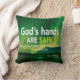 Inspirational Christian Scripture THROW PILLOW showing beautiful Northern Lights image with the Bible verse from Proverbs 3:5 - TRUST IN THE LORD. The message reads GOD'S HANDS ARE SAFE. Part of the INSPIRATIONAL PRINTS Collection by Berean Designs.