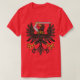 My 11 yo wore adult XL (5’7” 165#). The 8yo is small framed. She wore adult small and tied it in the back. Dark haired male wore adult large and 5’9”, 110# female wore adult medium . Good quality dark Heather gray, Gildan brand shirt. -it was next up from basic choice and cost about $20 per shirt. Not too thick or thin. Washed and dried well, no major shrinkage. Not see-through. Can wear a bra under it fine. Screen print is just as shown and well done, front and back.