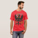 My 11 yo wore adult XL (5’7” 165#). The 8yo is small framed. She wore adult small and tied it in the back. Grandma wore adult large with long sleeve shirt underneath. Tall girl adult medium. Dark haired male adult large. Good quality dark Heather gray, Gildan brand shirt. -it was next up from basic choice and cost about $20 per shirt. Not too thick or thin. Washed and dried well, no major shrinkage. Not see-through. Can wear a bra under it fine. Screen print is just as shown and well done, front and back.