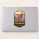 A vintage travel badge design of mustang galloping in Pryor Mountain Wild Horse Range located in Carbon and Big Horn counties of Montana, United States of America USA.