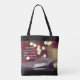 Inspirational quote scripture tote bag depicts an open Bible and features Psalm 119:105, "Your Word is a lamp to my feet and a light to my path."