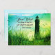 Inspirational quote postcard depicts a lighthouse surrounded by tall grass and features Bible Verse Psalm 119:105, "Your Word is a lamp to my feet and a light to my path." _