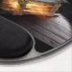 The plastic backing is nice and sturdy. The grippy pads underneath keep the mouse pad where I put it on my table. The pad the mouse sits on is cut well to fit the backing. The wrist pad is perfectly soft, supportive, and thick. I'm left-handed, and this mouse pad works just as well for me as it does for my right-handed friends. I'm the designer of HippieClecticHope products. I'm blown away by how well my intricate fractals turn out on the tangible items in the Zazzle Marketplace. This particular mouse pad ***appears*** like a 3D object... A mathematically-engineered rainbow black opal, inlaid under transparent fabric...