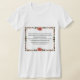 My overall review is that the T-shirt is nice, it fits true to size however the font is significantly smaller than advertised and you can't read it. The printing is unreadable and there is a strain to read it. It does not look like the advertised product. Maybe the shirt color is darker or a larger more visible font should have been used. Photos with and without flash and font is barely legible.