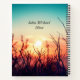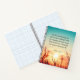 Inspirational quote scripture personalized notebook, journal depicts a beautiful nature photograph including a pink and yellow sunrise with blue skies over a meadow. It features an encouraging Bible Verse Psalm 143:8, "Let the morning bring me word of your unfailing LOVE, for I have put my trust in you. Show me the way I should go, for to you I entrust my life." Customize the back with name and date or the details of your choice.