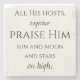 A series of six coasters containing the lyrics to the first verse of the hymn version of Psalm 148: "Hallelujah, praise Jehovah, from the heavens praise His name..."
