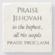 A series of six coasters containing the lyrics to the first verse of the hymn version of Psalm 148: "Hallelujah, praise Jehovah, from the heavens praise His name..."