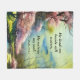 Inspirational quote scripture fleece blanket depicts a beautiful nature watercolor painting with a quiet stream of water lined with pink flowering trees and a blue sky. It features a portion of the beloved and encouraging Bible Verse 'The Lord is my Shepherd', Psalm 23:2-3, "He leads me beside still waters, He restores my soul."