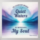 Christian Scripture poster showing water color image of a river with the Bible verse from Psalm 23:2-3