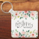 Keychain with inspirational quote scripture depicts a beautiful floral watercolor art design with white and pink roses and greenery. It features a portion of the beloved Bible Verse Psalm 23:3, "He restores my soul."