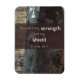 Magnet featuring an image of a shield on an antiqued wood background and the empowering words of Psalm 28:7- 'The Lord is my strength and my shield"