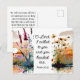 Postcard with inspirational quote scripture depicts a beautiful nature watercolor including earth tone shades of wildflowers on a woodland pond and a sunset background. It features an encouraging healing Bible Verse Psalm 30 2, "I cried to You and You healed me." The greeting, prayer can be personalized or deleted for a hand written message.