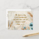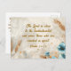 Postcard with inspirational quote scripture depicts a beautiful artistic design with blades of golden wheat and blue flowers on a light grey abstract background. It features an encouraging Bible Verse from Psalm 34:18, "The Lord is close to the brokenhearted and saves those who are crushed in spirit." The greeting, prayer can be personalized or deleted for a hand written message.