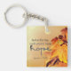 Inspirational quote scripture keychain depicts a nature photograph of an autumn branch of orange Maple leaves on a bright sunny background. It features an encouraging Bible Verse Psalm 71:14, "but as for me, I will always hove hope."