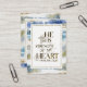 Inspirational quote scripture business card depicts a modern gold, white and blue background. It features Bible Verse Psalm 73:26, "He is the strength of my heart."